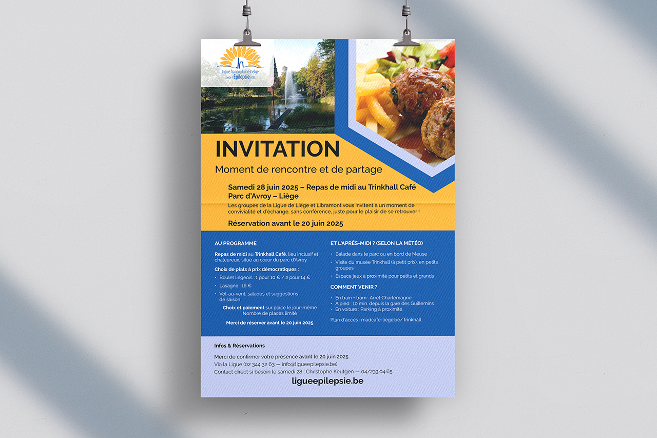 En tant que designer graphique bénévole engagé, je mets mes compétences créatives au service de la Ligue Francophone Belge contre l’Épilepsie dans le cadre d’un travail bénévole à fort impact social. Mon rôle consiste à concevoir des supports de communication visuelle cohérents et accessibles, en respectant l’identité graphique de l’association tout en optimisant la lisibilité et l’impact du message. J’ai notamment repensé le nouveau dépliant institutionnel en travaillant sur la hiérarchie de l’information, la mise en page et le choix typographique pour en améliorer la clarté. J’ai également réalisé un flyer de sensibilisation à destination du grand public, en m’appuyant sur des codes visuels simples, inclusifs et pédagogiques. Plus récemment, j’ai conçu une affiche pour l’antenne de Liège, en déployant une composition dynamique et harmonieuse, pensée pour capter l’attention tout en véhiculant les valeurs de la Ligue. Ce projet me permet d’approfondir mes compétences en design print, en direction artistique et en communication sociale, tout en contribuant à une cause qui me tient particulièrement à cœur.